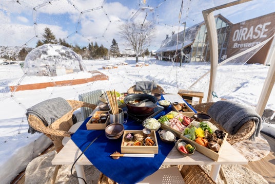 白銀、豪雪、地吹雪など、天気によって表情を変える十和田市の冬を間近にお楽しみいただける、期間限定の食事体験。ドームごとに1組貸し切りのプライベート空間で、地元食材をふんだんに使ったランチ、アフタヌーンティーをご堪能ください。