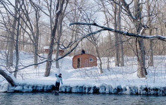 雪が降り積り、静謐な空気に包まれるモノクロームの十和田の森で、唯一無二の冬サウナ。水温1℃~5℃の十和田湖が水風呂というダイナミックさと緩やかなときの流れを味わうことができます。