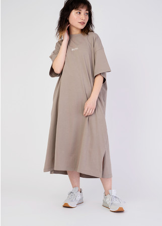 トレンド感のあるドロップショルダーでゆったりとしたマキシTシャツワンピース。絶妙な深さで入った裾スリットで動きやすい仕様に。