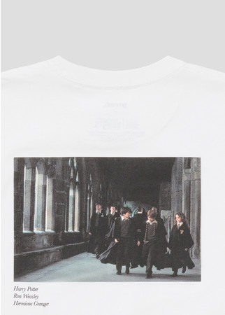 ハリー・ポッター、通称ロンことロナルド・ウィーズリーとハーマイオニー・グレンジャー。大親友の三人が校内を歩くシーンをバックにデザイン。フロントにはシンプルなロゴと三人それぞれの杖がプリントされています。