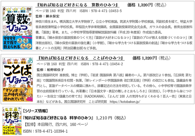 株式会社高橋書店(本社:東京都豊島区、代表取締役:高橋秀雄)は、2023年11月27日(月)に『知れば知るほど好きになる 算数のひみつ』(監修:細水 保宏)『知れば知るほど好きになる ことばのひみつ』(監修:柏野 和佳子)を
