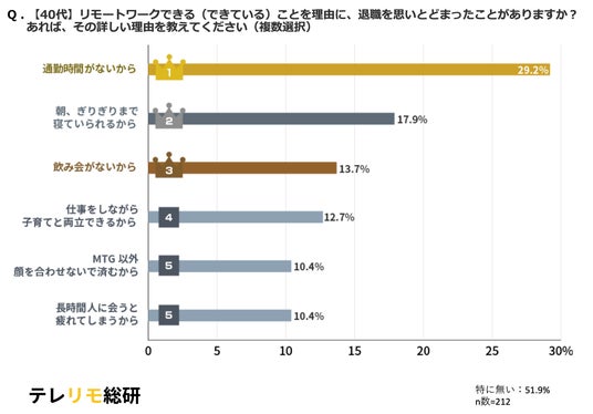 【40代】リモートワークできる(できている)ことを理由に、退職を思いとどまったことがありますか? あれば、その詳しい理由を教えてください(複数選択)結果グラフ
