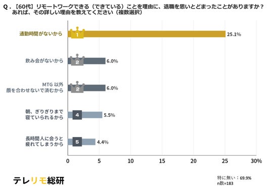 【60代】リモートワークできる(できている)ことを理由に、退職を思いとどまったことがありますか? あれば、その詳しい理由を教えてください(複数選択)結果グラフ