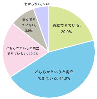 子どもは学業と部活動を両立できていると思うか質問したところ、65.8%が「両立できている」(両立できている:20.9%、どちらかというと両立できている:44.9%)と回答しました。
