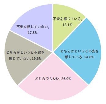 子どもが部活引退後、受験勉強への切り替えに不安を感じるか質問したところ、36.9%が「不安を感じている」(不安を感じている:12.1%、どちらかというと不安を感じている:24.8%)、37.1%が「不安を感じていない」(不安を感じていない:17.5%、どちらかというと不安を感じていない:19.6%)と回答しました。