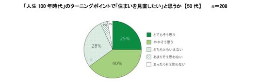 「人生100年時代」のターニングポイントで「住まいを見直したい」と思うか、という質問には、約3人に2人にもなる65%の人が「住まいを見直したい」と感じていることがわかりました。かつて想像していた50代からはイメージが異なり、想像以上に余裕のない日々を過ごしている現代人にとって、「人生を見直す」きっかけとして、「住まい」を見直すという選択肢は必要かもしれません。