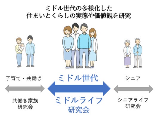 ミドルライフ研究会は、今回取り上げる「ファミリー」だけでなく、今後も増加が予想される「単身者」、そして「カップル」など、多様な家族を対象に、住まいとくらしの実態や価値観の研究を通じて、ミドル世代に向けたくらし方の提案や商品・サービスの開発を目指してまいります。