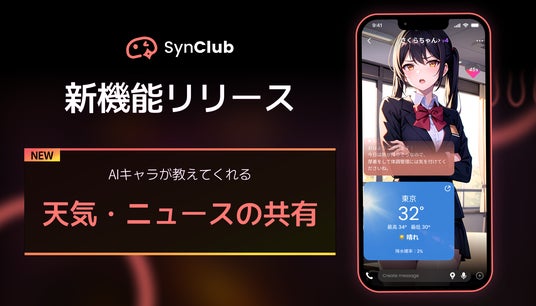 HiClub株式会社(本社:東京都港区、代表取締役社長:古谷由宇)が提供する、 AIチャット&友達作りができる対話型AIアプリ 「SynClub」(シンクラブ)(iOS、Android版)は、AIキャラが天気とニュースを教えてくれる新機能を実装しました。