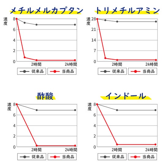 国内の検査機関において消臭率99%以上であることが実証済みです。