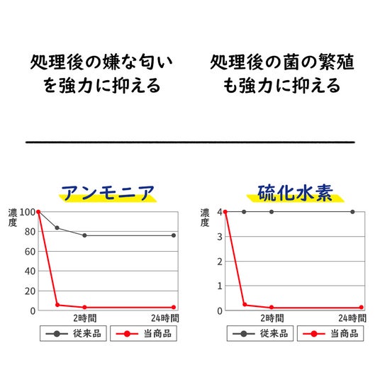 凝固剤の吸収ポリマーがしっかりと固めて、抗菌と消臭を同時に行います。