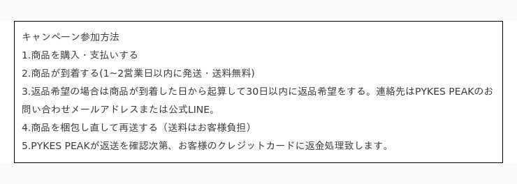 ※PYKES PEAK公式オンラインショップのみのキャンペーンになります。Amazonや楽天でお買い上げの方には適用されません。