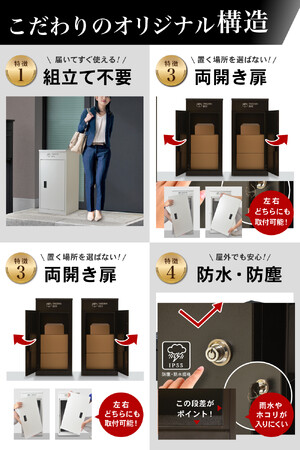 - 2つの投函口で何度でも投函可能。非対面の荷物受け取りをより快適に。