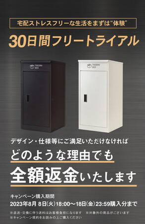 -何か不満があれば30日以内なら全額返金ができる。安心して宅配ボックスのある生活を体験してほしい