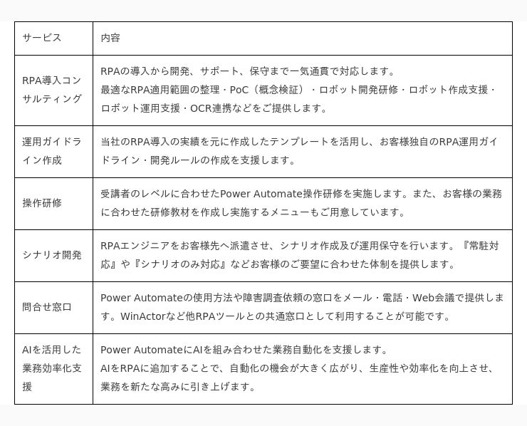 今回当社が落札した業務委託内容は、Power Automateにおけるソフトウェアロボットの開発及びPower Automate導入後の運用サポートであります。