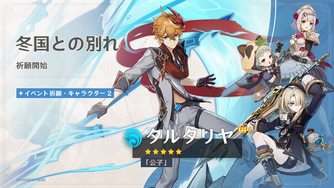 株式会社COGNOSPHERE(本社:東京都渋谷区、代表取締役社長:李 承天)は、HoYoverseが配信するマルチプラットフォーム対応オープンワールドRPG『原神(げんしん)』において、本日9月5日(火)より、新★4キャラクターの「フレミネ(氷)」や、限定★5キャラクターの「鍾離(岩)」、「タルタリヤ(水)」などが登場するイベント祈願を開催いたしました。その他、開催中や開催予定のイベント情報などをお知らせいたします。