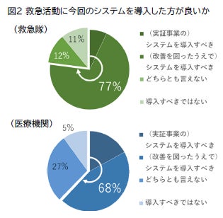● 救急隊員は約8割、医療従事者は約7割がシステム導入を希望(図2)