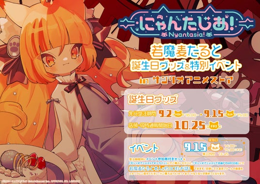 株式会社ClaN Entertainment(本社:東京都港区 代表取締役社長:大井 基行、以下ClaN)は、株式会社サンリオ(本社:東京都品川区)と共同で行うVTuberプロジェクト「にゃんたじあ!」に所属する「若魔麦たると」が9月2日に誕生日を迎えたことを記念し、誕生日グッズの販売を行います。