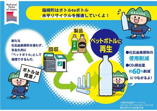 2022年7月25日に、箱根町、サントリーグループと協定を締結。本協定は、使用済みペットボトルを原材料として新たなペットボトルに生まれ変わらせることで、持続性のある資源化、適正処理の推進および二酸化炭素排出量の削減を図ることを目的としています。