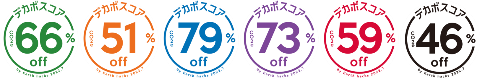 Earth hacksが提供する、商品やサービスにおけるCO2排出量の削減率をスコア化した指標です。従来の素材や手法を用いた商品等と比較し、環境に配慮した工夫によって変化するCO2排出量の削減率を表示し、商品やサービスの環境貢献度をひとめで、わかりやすく伝えます。2022年7月に提供を開始し、2026年1月時点で導入企業は300社以上、1,400以上の商品・サービスに導入されています。