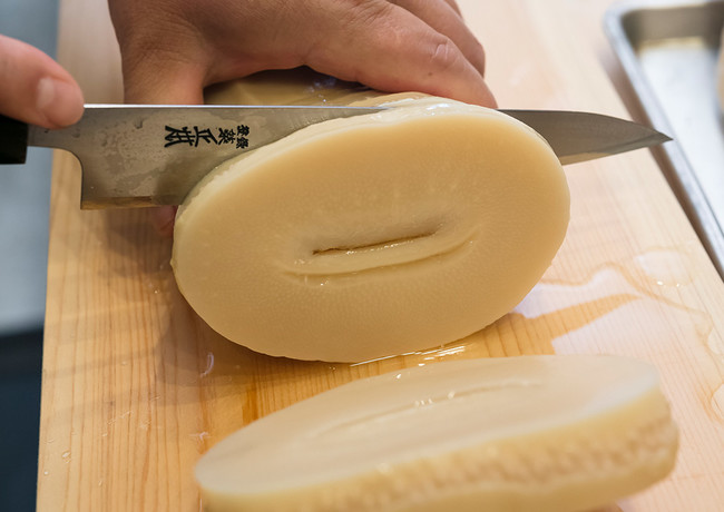 季節になると毎日のように届くのは、透き通るようなみずみずしさの朝掘りです。