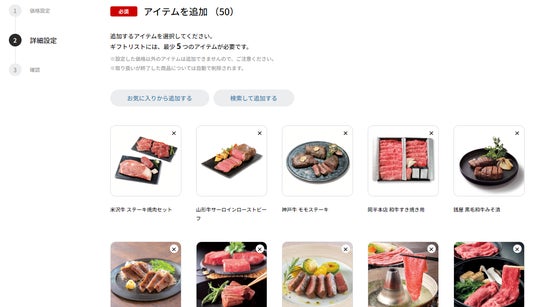 「GIFT LIST」では1からデジタルカタログギフトを作ることができます。はじめに価格の設定をし、価格に相当するアイテムを複数選びます。その他、リストのタイトルや説明文章、使用シーンなどを設定しギフトリストの完成です。作ったギフトリストは発行されるURLをメールやLINEなどのSNSで送信する仕組みとなっているため、住所を知らない人やオンライン上で繋がりのある人などにも気軽に贈ることができます。