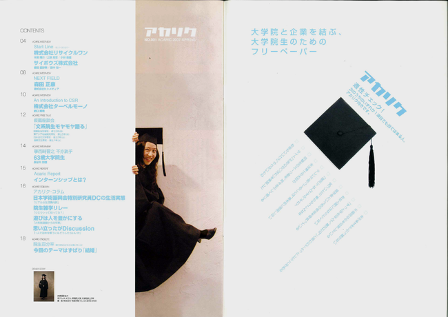「大学院と企業を結ぶ、大学院生のためのフリーペーパー」というコンセプトを持ったフリーペーパー「アカリク」のミッションは、「大学院生・研究者のためのキャリアマガジン Acaric Journal」へとも色濃く引き継がれております。これからも皆様に愛されるマガジンであるために工夫を重ねてまいります。