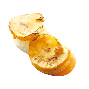 ジャンボ蒸しほたてバター醤油炙り/1貫160円(税込)