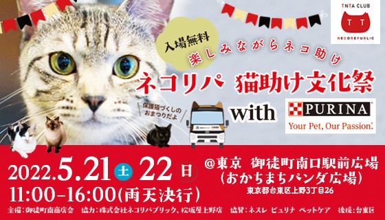 保護猫カフェ「ネコリパブリック」や保護猫のためのブランド「NECOREPA/」を運営する株式会社ネコリパブリック(本社所在地:東京都台東区、代表取締役:河瀬麻花)は5月21日(土)5月22日(日)に東京・御徒町にて、ネコ好きによる、ネコのためのネコ祭りイベント「ネコリパ猫助け文化祭」を関東初開催いたします。