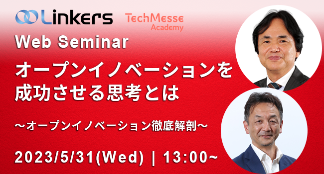 リンカーズ株式会社(本社:東京都文京区、代表取締役社長:前田 佳宏)は、ものづくり企業のオープンイノベーションを推進する技術者や研究者を対象に、「オープンイノベーションを成功させる思考とは」というテーマについて、パネルディスカッションを中心に議論する Web セミナーを、5 月 31 日(水) 13:00 より開催いたします。