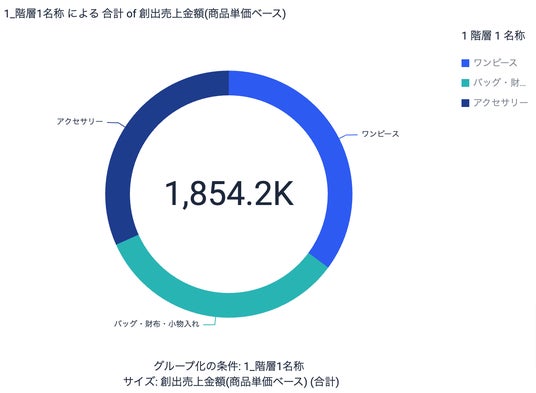 実際に表示されるグラフの一例(階層1名称による合計of創出売上金額_商品単価ベース)