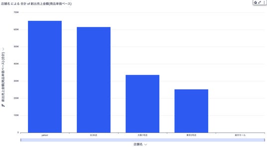 実際に表示されるグラフの一例(店舗名による合計of創出売上金額_商品単価ベース)