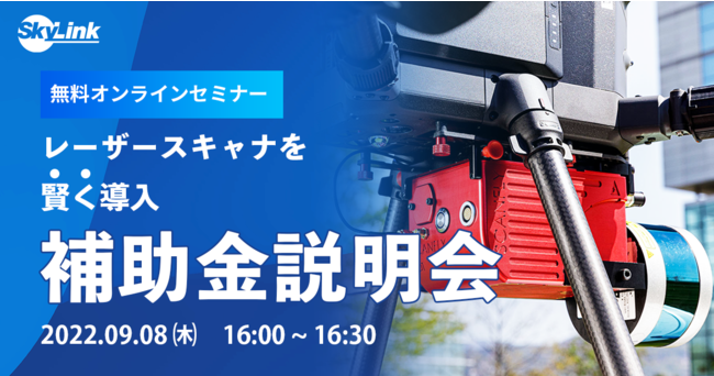 ドローンの販売や産業向けソリューションを展開する、SkyLink Japan(株式会社WorldLink & Company 本社:京都市北区、代表取締役社長:須田信也)は、9/8(木)に『レーザースキャナを賢く導入!補助金活用 無料オンラインセミナー』と題したウェブセミナーを実施します。レーザースキャナを活用し新規測量ビジネス参入を検討している方、またはすでに測量ビジネスを始めているけれど裾野を広げて事業展開していきたいという方を対象とし、皆さまの設備導入に有益な情報をお伝えします。