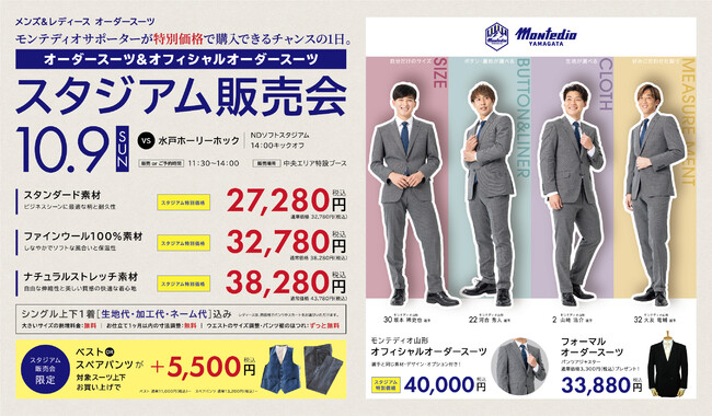 ・モンテディオ山形 オフィシャルオーダースーツ 40,000円(税込)