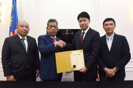 左より LEFORM社Law Kok Thye社長、同社Chairman Datuk Seri Akhil Bin Bulat、マレーシア現法篠塚社長、同社Lim部長