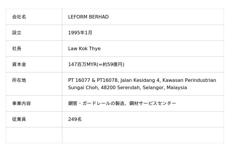 LEFORM社 概要 (https://www.LEFORMgroup.com.my/)