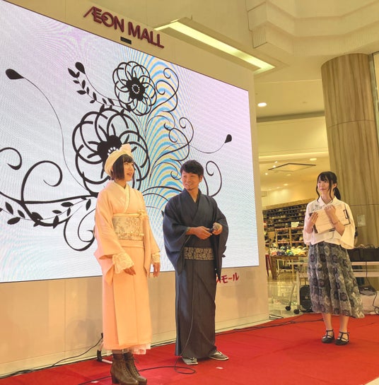 その他にもセイハ英語学院の皆様にaxes femmeのお洋服でランウェイを歩いていただいたり、着物専門店「HANAGOROMO」とのコラボ企画では実際の着物をお借りした和×axes femmeのミックスコーディネートが披露されて注目を浴びました。
