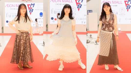 学校で学んだファッションや最新トレンドの知識、そして1人1人の個性とセンスを存分に発揮してブランドの垣根を超えたミックスコーデを考え、実際に着用してランウェイを歩いて披露。イオンモール名取に出店しているa.v.v、グローバルワーク、チャオパニックティピー、グリーンパークスフーワ、レトロギャラリーにご協力いただき、各ブランドとaxes femmeとを組み合わせた新たなファッションを提案してくれました。