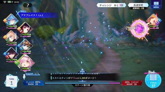 アプリ閉じても自動でバトルが進行するので、放置するだけでアイテムが収集できます