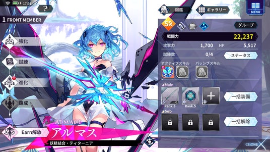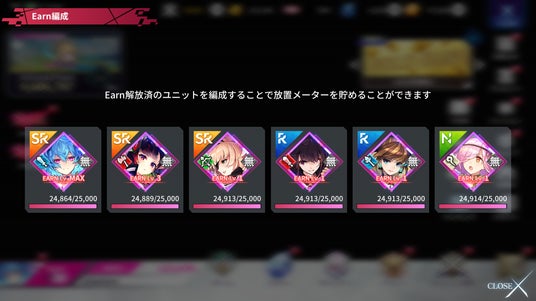 4.6体のEarn解放済みのキル姫でEarn編成を行うことが可能です