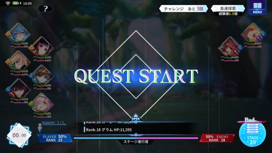 また本作の特徴として、アプリを閉じてもバトルが自動で進行し、時間の経過によって、様々なアイテムや経験値を獲得することができます。ゲームローンチ後には、次々と新機能を公開していく予定です。