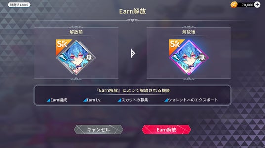 この一連の流れを「放置Earn」といいます。放置Earnを楽しむには、キル姫を「Earn解放」する必要があります。