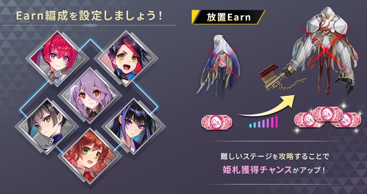 5.Earn編成後、”放置”するだけで姫札を獲得することができます