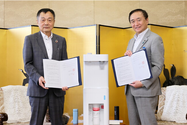 本協定に基づく取組として早速、5月30日(ごみゼロの日)より県庁本庁舎1階に2台、新庁舎4階給湯室に1台のマイボトル用給水器を設置していただきました。今後は双方の強みを活かし、給水スポットの整備を通じてマイボトルの利用促進を全県的な取組の広がりにつなげていきたいと考えています。