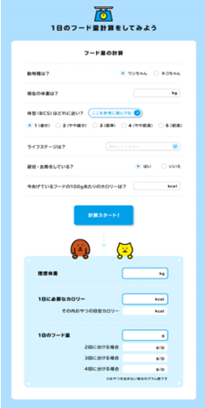 現在の体重や体型を入力するとフード量を計算できるツールを実践できます。