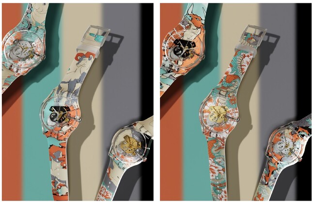新作「Swatch X You - Lunar Zodiac(干支)コレクション」は、Swatch Art Peace Hotelのアーティスト・イン・レジデンスに滞在しているFeng Binの独特な作品が特徴となっています。目を引く彼のデザインには、Lunar Zodiac(干支)に登場する動物たちのおとぎ話のシーンが生き生きと描かれています。