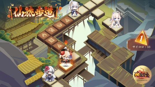 仙旅歩道では三角サイコロを投げて進むことで様々なイベントが発生し、イベントの種類により報酬は異なります。探索の最中に采薇と出会うと、綱引き形式の勝負が始まります。様々なイベントをクリアして報酬を獲得しましょう。