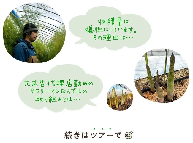 「アスパラを食べながら参加する「農園見学」」と「しまねずみファームへの「インタビュー」」