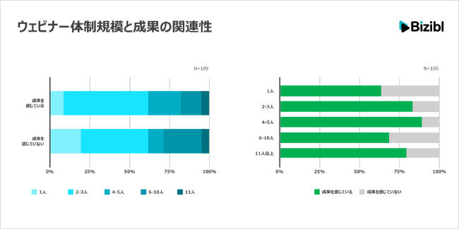 1人体制もしくは6人以上の体制になると成果を感じにくい傾向