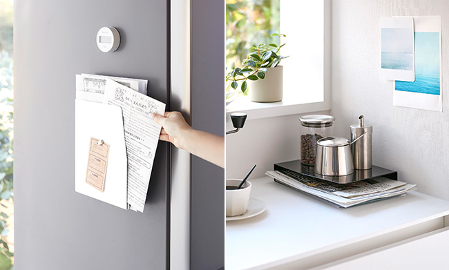 マグネットで布巾やキッチン用手袋などを浮かせて収納。