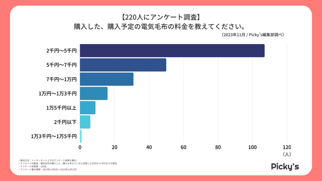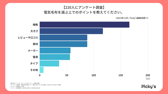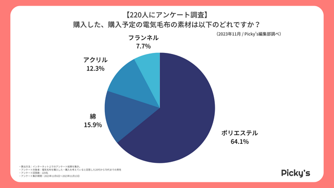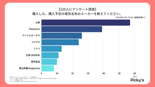 「Picky’s」は、インターネットショッピングにおいて、購入前に試せない・選ぶべきものがわからないという課題の解決を目標に、あらゆる商品のおすすめランキングや検証レビューを紹介するサイトです。このたびPicky’s(https://rentry.jp/note/)では、冬物関連に先駆けて、電気毛布についてインターネット上でアンケート調査を行いましたので発表いたします。
